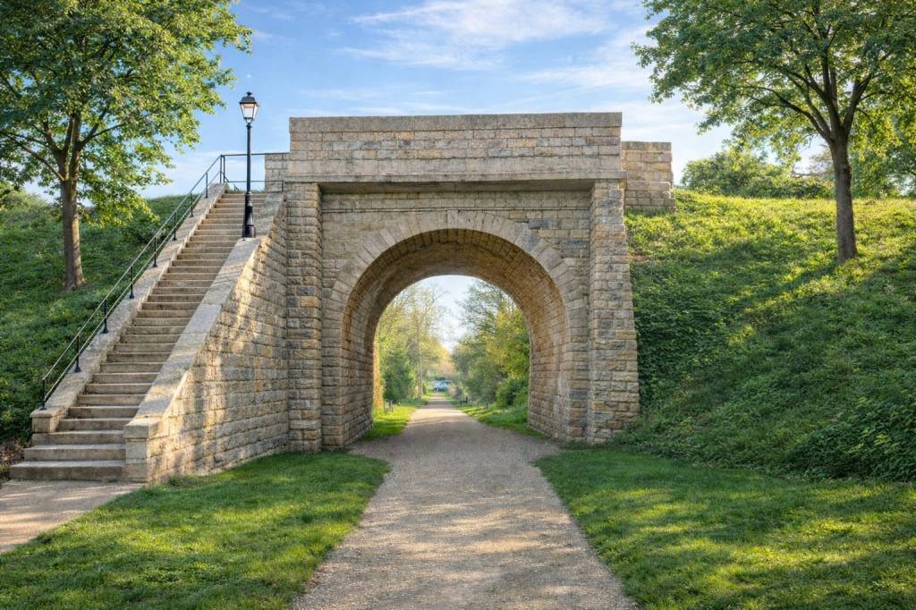 Mise en valeur du pont, réalisation d’un accés par la route de Ste Ouenne et création si possible d’un petit parc de détente.